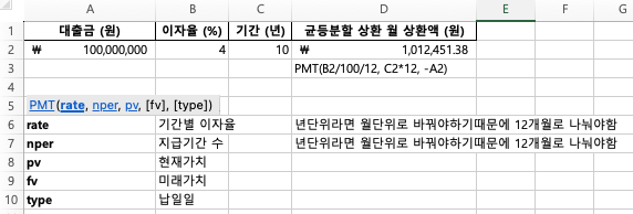 대출 상환 계획: PMT 함수로 월 상환액 계산하기