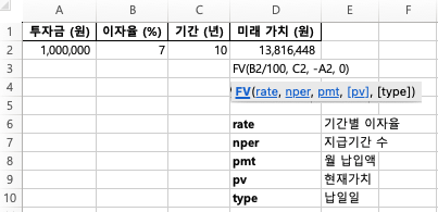 미래 가치(Future Value, FV) 함수