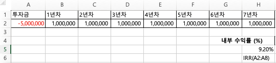 내부 수익률(Internal Rate of Return, IRR) 함수