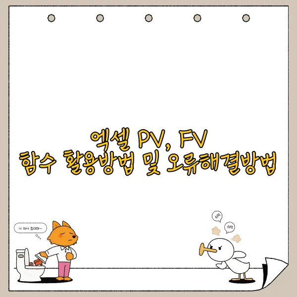 PV, FV 함수! 참 편리하죠? 마치 마법처럼 숫자 몇 개 넣으면 미래 가치 뚝딱! 현재 가치 짠! 하고 나타나니까요. 그런데… 마법에도 함정은 있는 법! 가끔 예상치 못한 오류 때문에 머리를 쥐어뜯게 되는 경우가 있죠? 😫 "내가 뭘 잘못했지?!" 싶어 엑셀 창을 노려보게 되는 그 순간! 걱정 마세요! 여러분의 엑셀 구원 요정이 여기 있습니다! ✨ 지금부터 PV, FV 함수를 사용할 때 흔히 발생하는 오류와 그 해결책을 아주 쉽고 재밌게 알려드릴게요! 😉