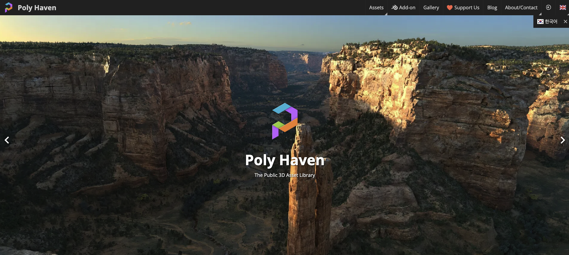 Poly Haven도 놓칠 수 없죠! 사진처럼 사실적인 PBR 텍스처를 제공하는 사이트인데, 텍스처뿐만 아니라 고퀄리티 모델들도 무료로 다운로드할 수 있다는 사실! 알고 계셨나요? Poly Haven은 CC0 라이선스를 적용해서 상업적 이용도 자유롭답니다! 저는 여기서 돌멩이, 나뭇잎, 잔디 같은 자연물 모델을 다운로드해서 배경 작업에 사용했는데, 퀄리티가 어마어마해서 진짜 사진인 줄 알았어요! 게다가 8K 해상도의 텍스처까지 제공해 줘서 클로즈업 샷에서도 텍스처가 깨지거나 흐릿하게 보이는 현상 없이 선명한 결과물을 얻을 수 있었답니다!