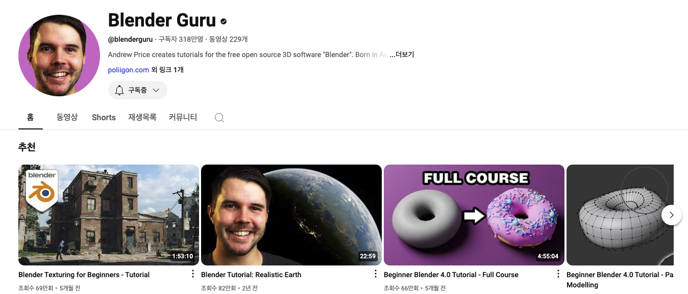 블렌더 실력 향상에 도움되는 튜토리얼 사이트
