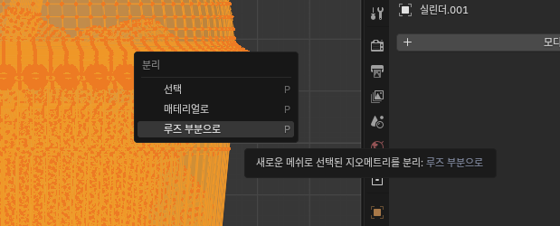 선택을 완료했으면, 이제 분리 마법을 부릴 차례! 'P' 키를 눌러 분리 메뉴를 소환합니다! 짜잔~! 여기서 'Selection'을 선택하면 선택한 부분이 새로운 오브젝트로 분리됩니다! 마치 세포분열처럼 말이죠! 🦠 분리된 오브젝트는 Object Mode로 돌아가면(Tab 키!) 확인할 수 있습니다. 어때요? 생각보다 간단하죠?!
