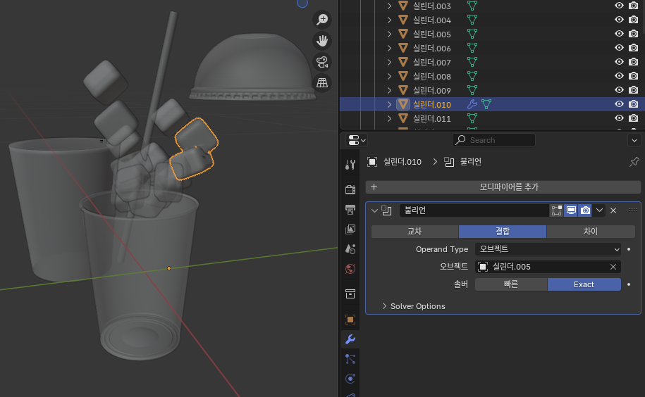 마치 요리 레시피처럼 다양한 옵션들이 있어서, 원하는 모양을 만들 수 있죠! 예를 들어, 큐브와 큐브를 합치고 싶다면? 큐브에 Boolean Modifier를 추가하고, Operation을 결합으로 설정! 그리고 나서 다른 큐브 오브젝트를 스포이드로 찍어 선택하면… 짠! ✨