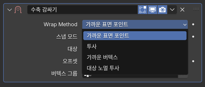이건 수축감싸기가 어떤 방식으로 작동할지 결정하는 핵심 설정입니다! 가까운 표면 포인트
