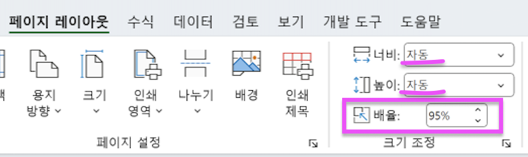 혹시 인쇄 크기를 조절하고 싶으신가요? '페이지 레이아웃' 탭의 '배율'에서 '맞춤'을 선택하면 원하는 비율로 확대/축소 인쇄가 가능합니다! 예를 들어, A4 용지 한 장에 꽉 차게 인쇄하려면 '페이지에 맞춤' 기능을 활용하면 됩니다. 100%보다 작게 설정하면 내용이 축소되어 인쇄되고, 100%보다 크게 설정하면 내용이 확대되어 여러 장에 나눠서 인쇄되겠죠?!