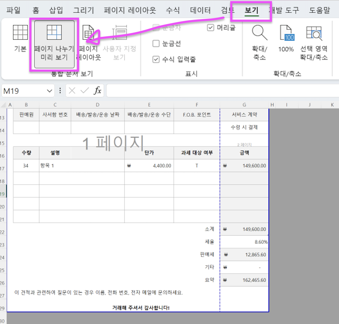 2. "페이지 나누기 미리 보기"를 활용한 레이아웃 점검!