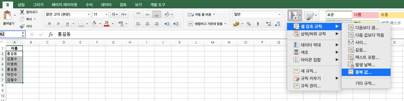 조건부 서식으로 중복 표시