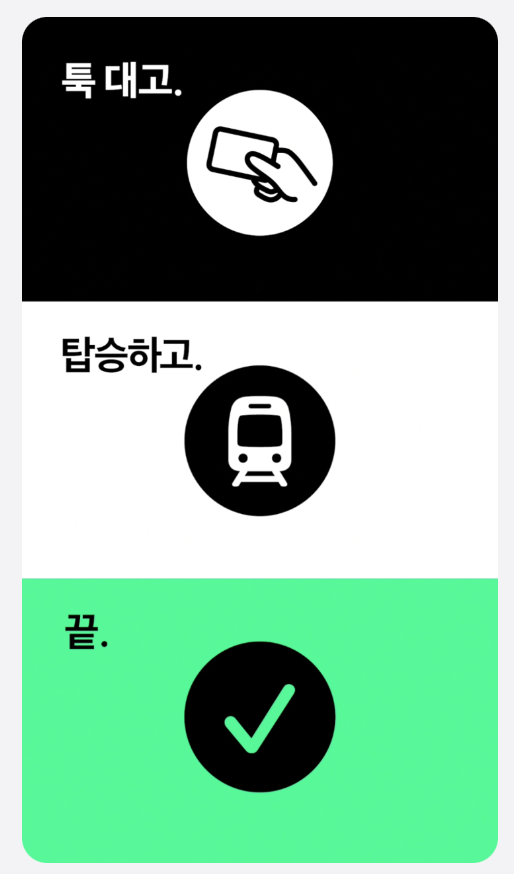 - 특히 출퇴근 시간, 지갑 꺼낼 필요 없이 바로 태깅 가능!