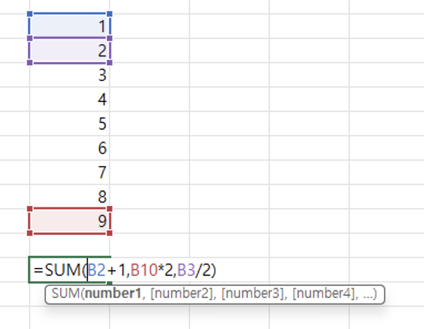 와 같이 입력하면 A1 셀 값의 2배, B1 셀 값의 1/3, 그리고 숫자 5를 모두 더한 결과를 얻을 수 있죠! 😲 놀랍지 않나요?!
