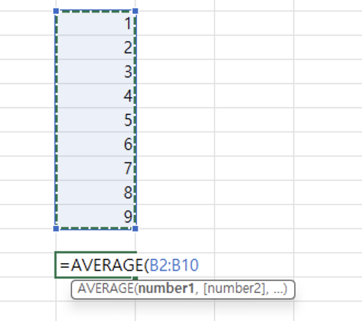 AVERAGE 함수의 기본 구조는 놀랍도록 간단합니다! =AVERAGE(숫자1, 숫자2, ...)