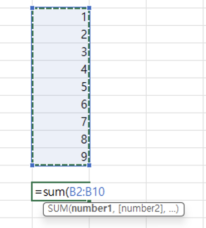 SUM 함수의 기본적인 형태는 =SUM(number1, [number2], ...)
