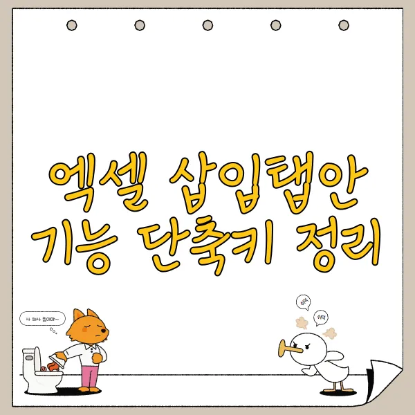 후웁~! 드디어 엑셀 삽입 탭의 신세계로 여러분을 안내할 시간이에요! 지금까지 삽입 탭 기능들을 하나하나 마우스로 클릭하며 시간을 낭비하셨다고요?! 그런 엑린이(?) 생활은 이제 그만! ✋ 번개처럼 빠른 엑셀 작업을 위한 자주 쓰는 삽입 단축키 모음, 지금 바로 공개합니다! 🎉