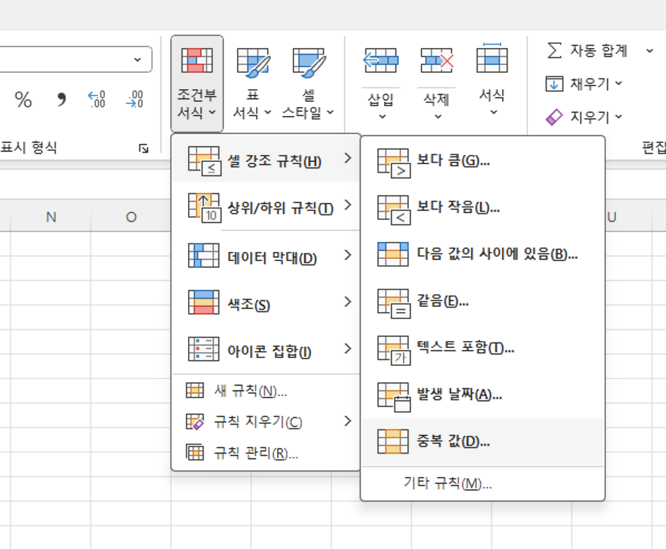 엑셀 기능을 활용한 중복 데이터 찾기