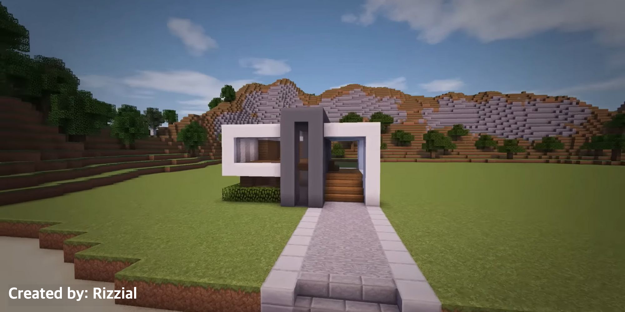 세련되고 현대적인 디자인을 선호한다면 모던 하우스가 딱! 🏙️ 유리 블록과 콘크리트를 활용하여 도시적인 분위기를 연출해보세요. 깔끔한 직선과 모던한 인테리어는 당신의 마인크래프트 라이프에 세련된 감각을 더해줄 거예요. ✨
