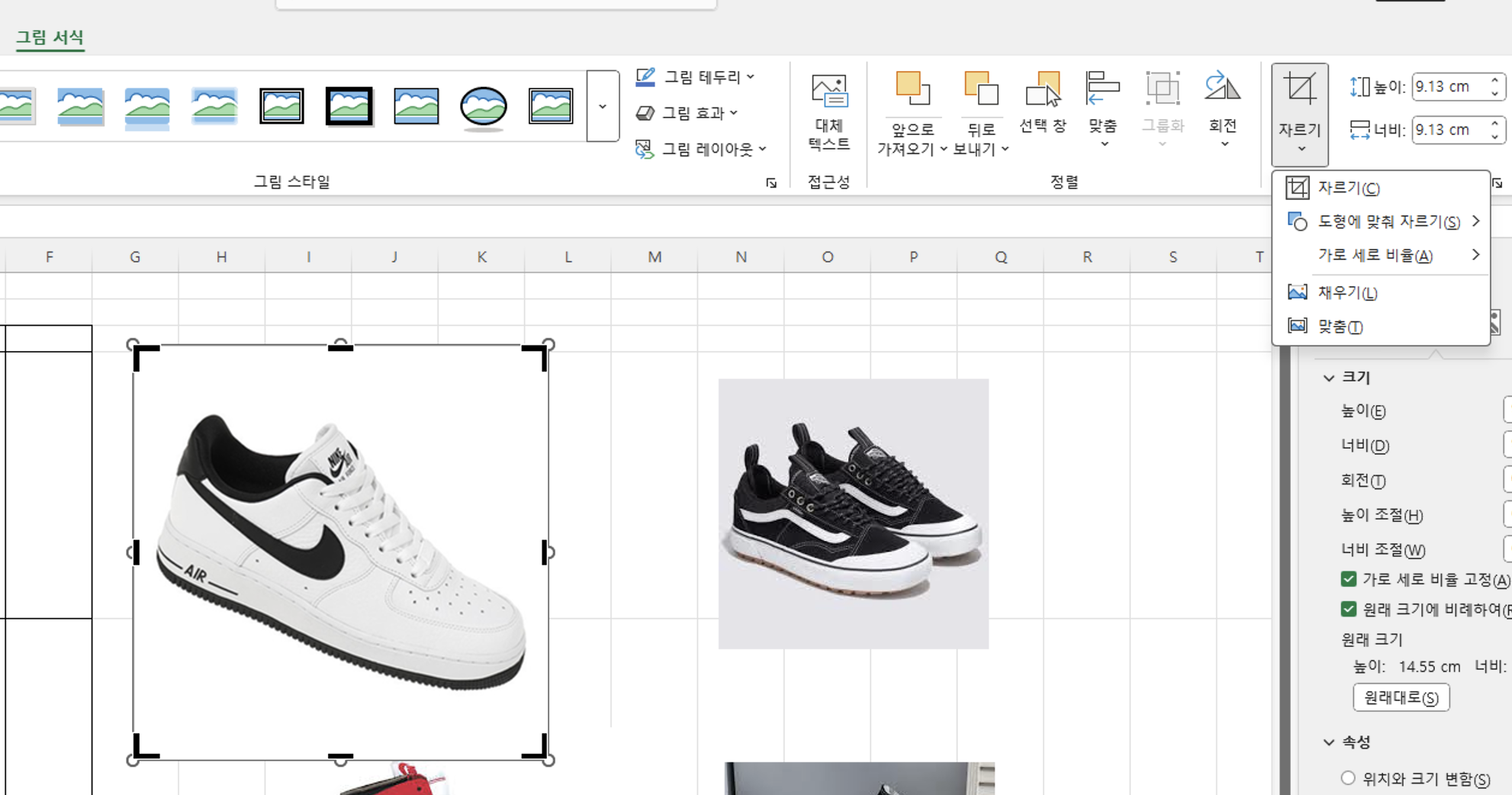 자, 이제 좀 더 고급 기술로 들어가 볼까요?! 혹시 "자르기" 기능 아시나요? 사진의 일부분만 셀에 보이게 하고 싶을 때 딱!입니다. 사진을 선택하고 "서식" 탭에서 "자르기"를 클릭! 원하는 부분만 남기고 싹둑싹둑 잘라주세요! 마치 전문가처럼 섬세한 손길로! (훗)
