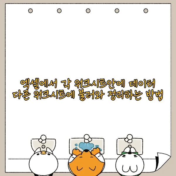 여러분, 엑셀과 씨름하다가 퇴근 시간을 놓쳐본 경험, 다들 있으시죠? 특히 각 워크시트에 흩어져 있는 데이터를 한 곳에 모아 정리해야 할 때, 마치 미로 속에 갇힌 기분이 들기도 합니다. (저만 그런가요? 😅) 하지만 이제 그런 걱정은 붙들어 매세요! 오늘은 바로 그 골치 아픈 문제, 각 워크시트안에 데이터를 다른 워크시트에 불러와 정리하는 마법을 전수해 드리겠습니다. 마법 지팡이는 필요 없고, 엑셀만 있으면 됩니다! 데이터 통합이 왜 필요한지, 어떻게 하면 엑셀 함수를 이용해서 흩어진 데이터들을 마법처럼 한 장으로 모을 수 있는지, 그리고 깨알 같은 효율적인 데이터 정리 팁까지! 자, 이제 엑셀 마법사로 변신할 준비되셨나요? ✨