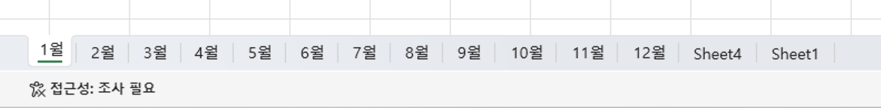 월별 보고서 좌측 상단 세모 클릭해서 전체 범위 선택 후 복사 (Ctrl + C)! 새로 만든 월별 시트 중 1월 번째 시트 선택, Shift 키 누른 상태에서 마지막 시트 클릭!🖱️