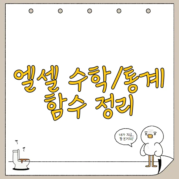 복잡한 계산도 순식간에 해결해주는 필수적인 수학 함수부터, 데이터 분석의 기초가 되는 자주 사용하는 통계 함수까지! 걱정 마세요, 하나도 어렵지 않습니다.
