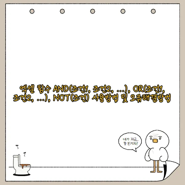 엑셀과 씨름하다 보면, 마치 미로 속에 갇힌 기분 들 때 있지 않으세요? 특히 AND, OR, NOT 함수는 마법 주문처럼 느껴지기도 하죠. 조건들을 섞어 쓰다 보면, 내가 원하는 결과는 안 나오고 에러 메시지만 깜빡깜빡!🤯 하지만 이제 걱정은 붙들어 매세요! 이 포스팅에서는 엑셀 함수 AND, OR, NOT 사용법을 마스터할 수 있는 비법을 전수해 드립니다. 복잡한 조건들을 마치 레고 블록처럼 쉽게 조립하고, 원하는 결과를 뽑아낼 수 있도록 말이죠. 함수 오류 해결 방법까지 꼼꼼하게 알려드리니, 더 이상 에러 메시지에 좌절하지 마세요! 자, 이제 엑셀 마법사로 변신할 준비되셨나요? ✨